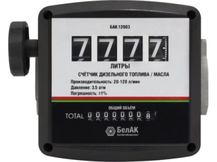 Счетчик БелАК арт: БАК.12022 предназначен для точного учета перекачиваемого дизельного топлива. Погрешность не превышает 0,5%. Применяется в системах раздачи с